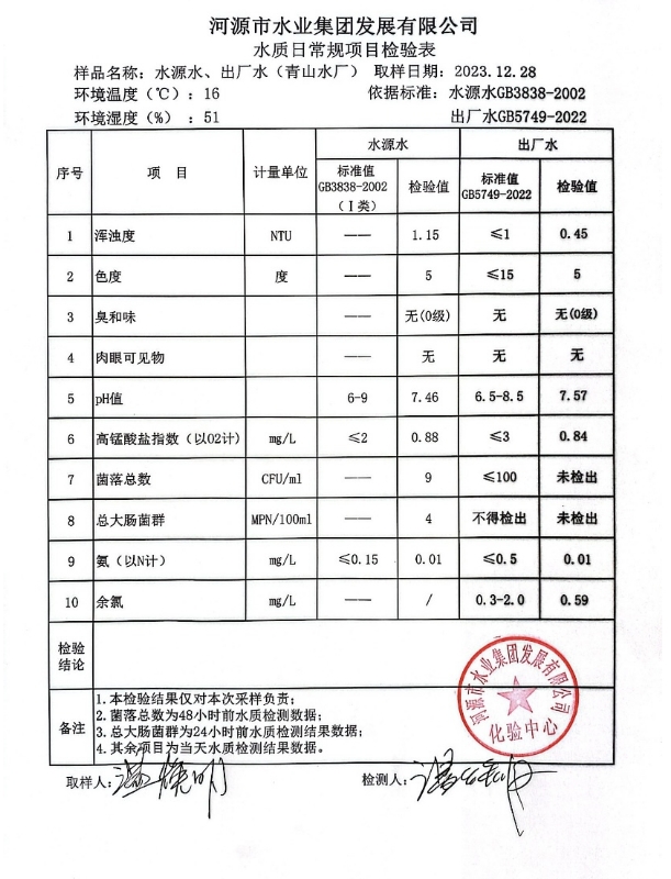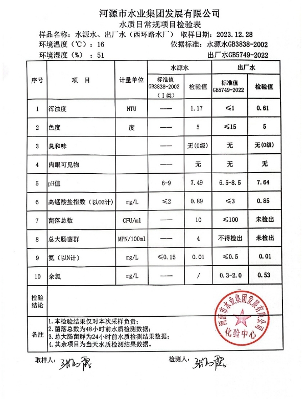 2023年12月28日水質(zhì)檢驗(yàn)報(bào)告