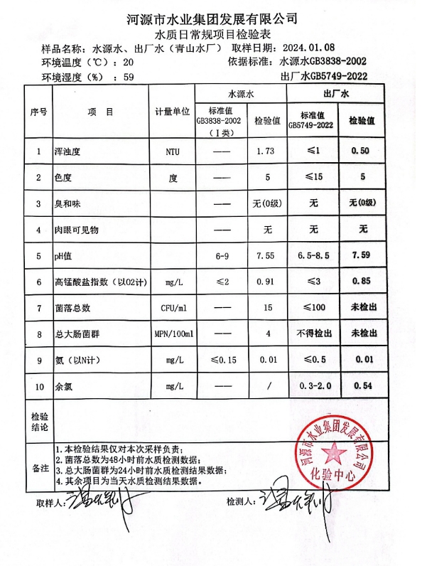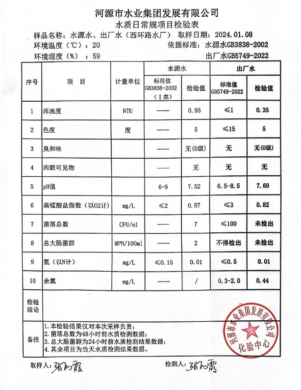 2024年1月8日水質檢驗報告