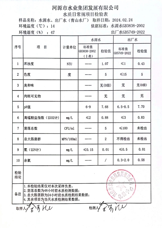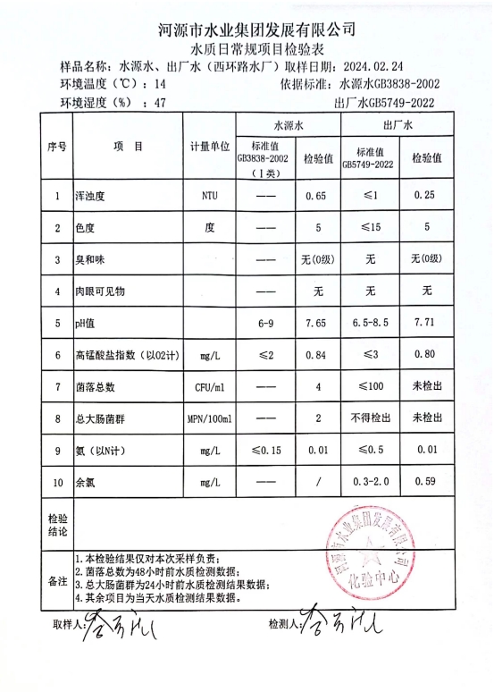 2024年2月24日水質(zhì)檢驗報告 ???