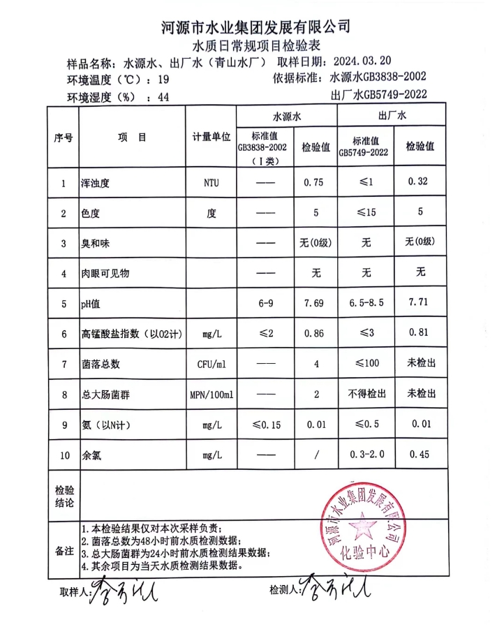 2024年3月20日水質檢驗報告