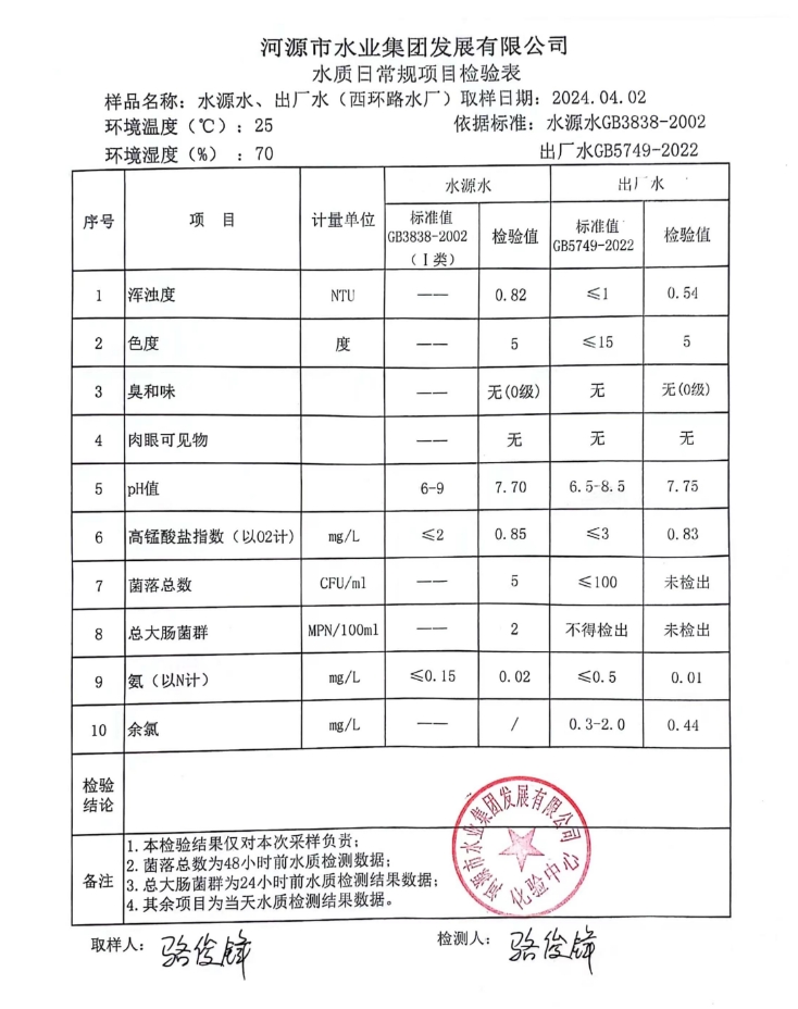 2024年4月2日水質檢驗報告
