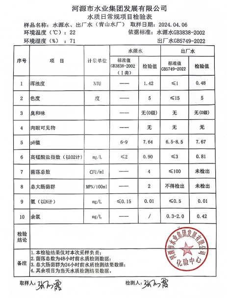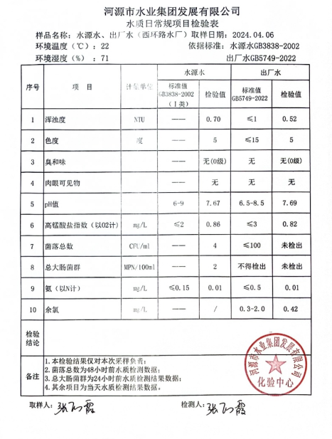 2024年4月6日水質(zhì)檢驗報告