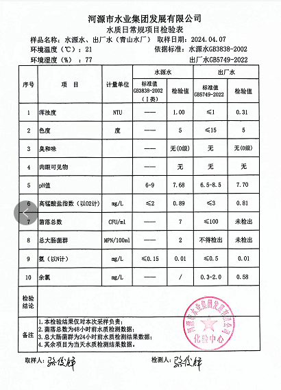 2024年4月7日水質檢驗報告