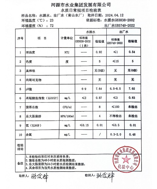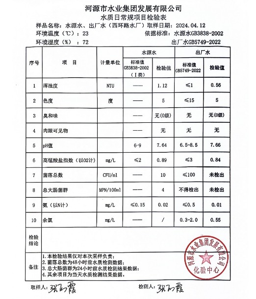 2024年4月12日水質(zhì)檢驗(yàn)報(bào)告