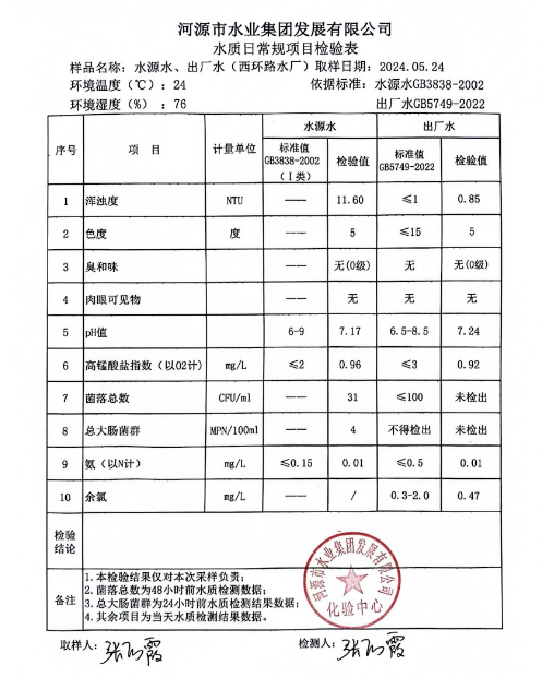2024年5月24日水質(zhì)檢驗(yàn)報(bào)告 ???