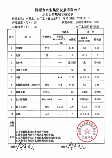 2024年6月1日水質(zhì)檢驗(yàn)報(bào)告 ???