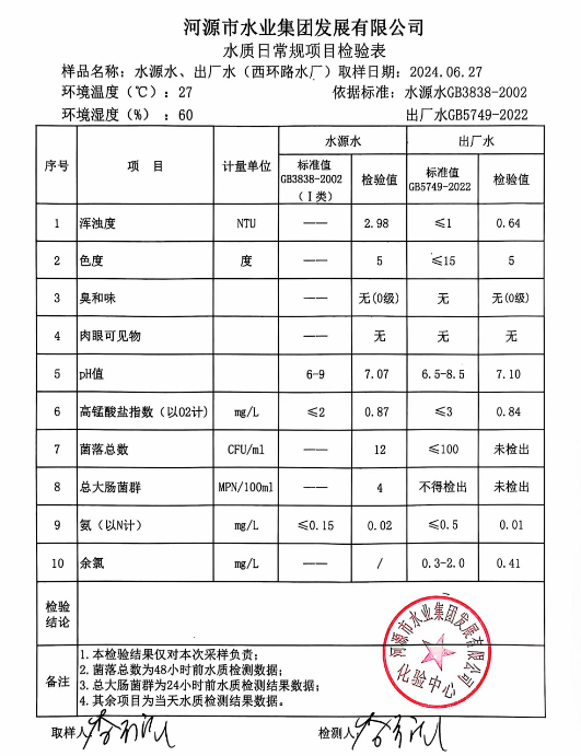2024年6月27日水質檢驗報告