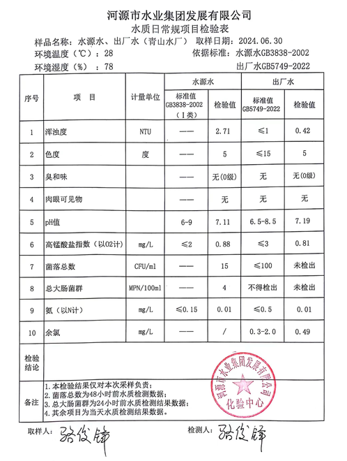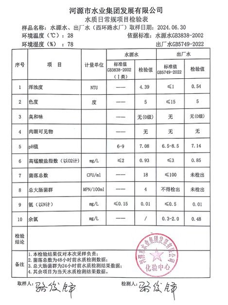 2024年6月30日水質(zhì)檢驗報告