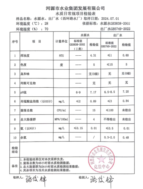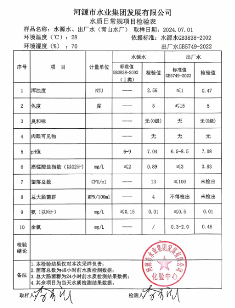 2024年7月1日水質(zhì)檢驗報告
