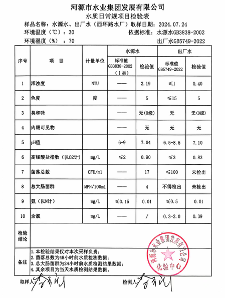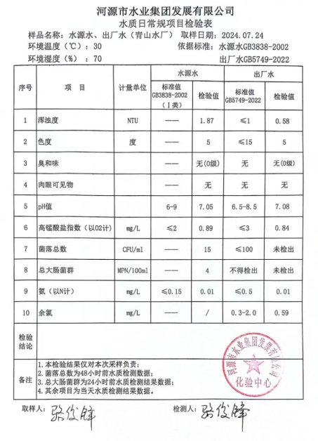 2024年7月24日水質檢驗報告