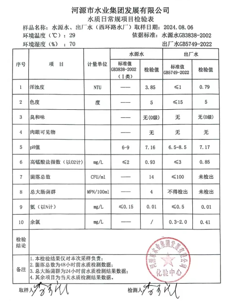 2024年8月6日水質(zhì)檢驗報告