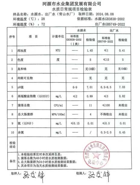 2024年8月8日水質檢驗報告