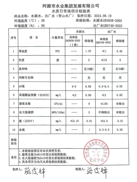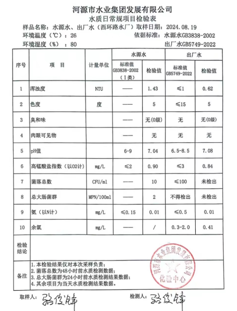 2024年8月19日水質(zhì)檢驗(yàn)報(bào)告