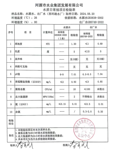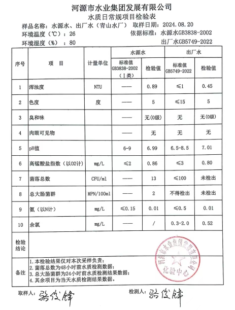 2024年8月20日水質(zhì)檢驗報告