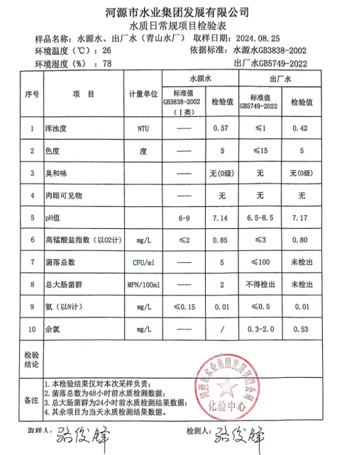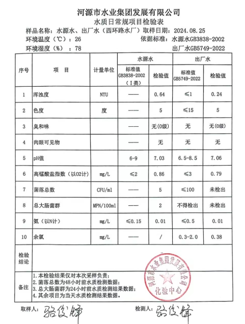 2024年8月25日水質(zhì)檢驗報告