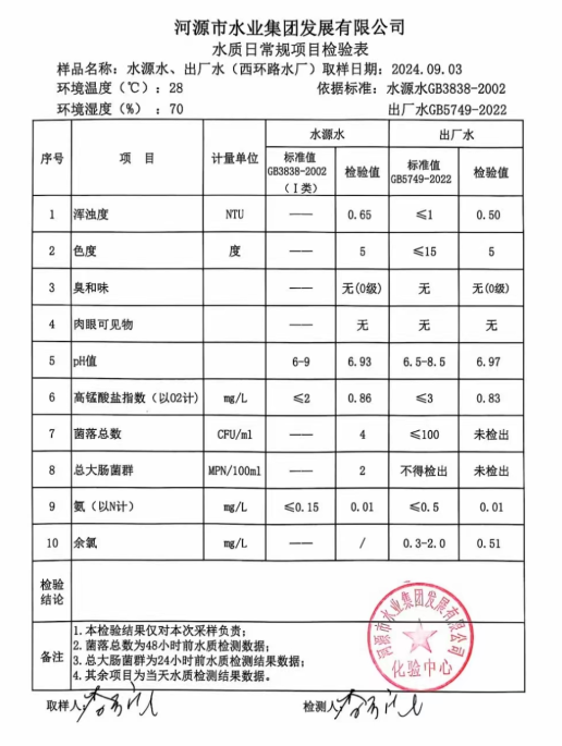 2024年9月3日水質檢驗報告
