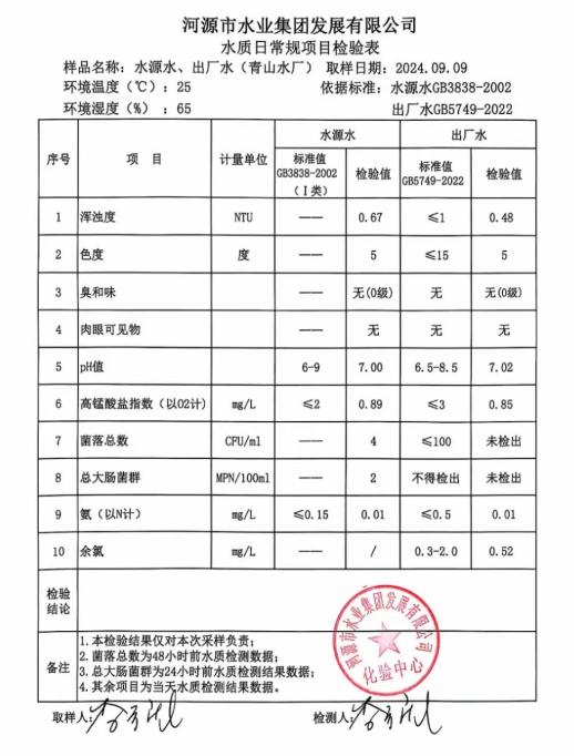 2024年9月9日水質(zhì)檢驗報告