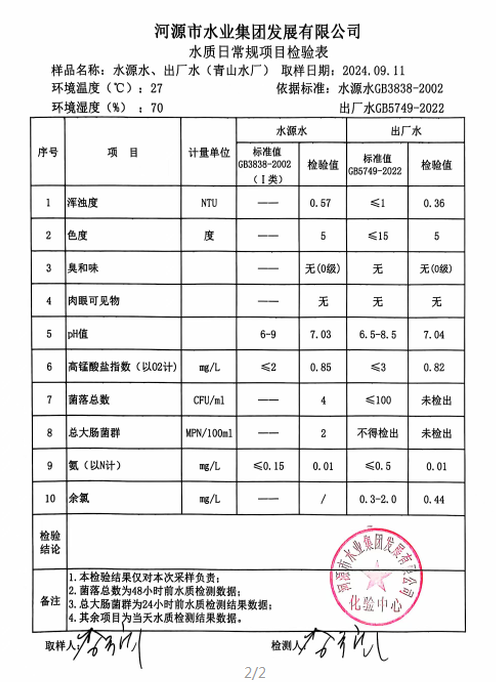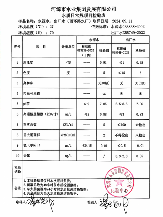 2024年9月11日水質(zhì)檢驗(yàn)報(bào)告
