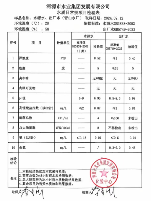 2024年9月12日水質檢驗報告