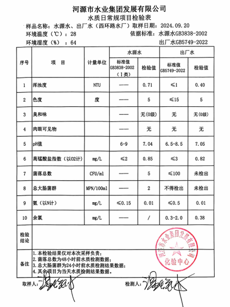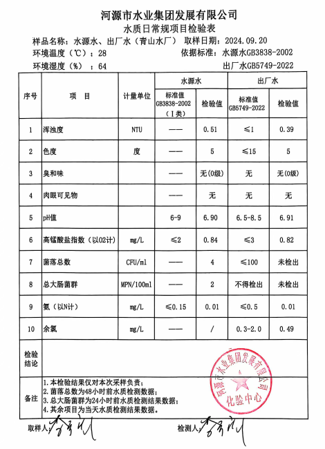 2024年9月20日水質(zhì)檢驗(yàn)報(bào)告