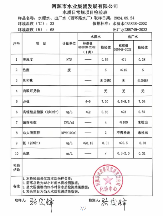 2024年9月24日水質(zhì)檢驗(yàn)報(bào)告