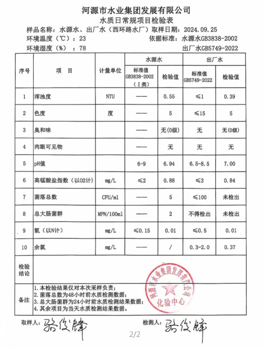 2024年9月25日水質檢驗報告