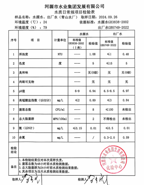 2024年9月26日水質檢驗報告