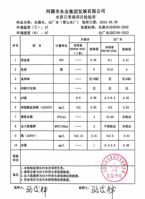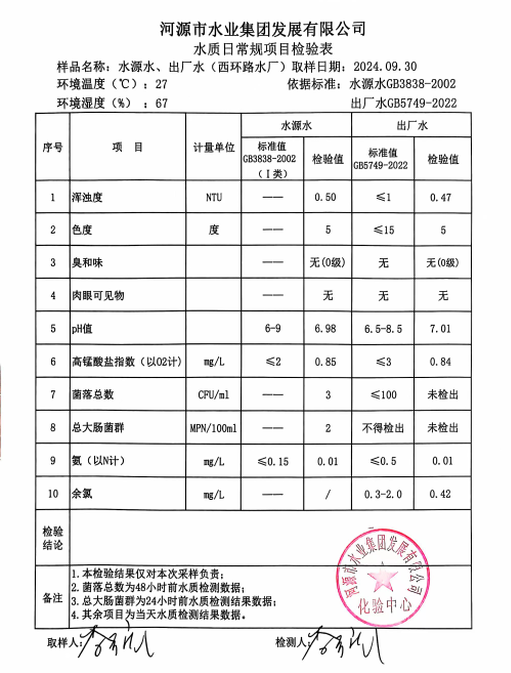 2024年9月30日水質檢驗報告