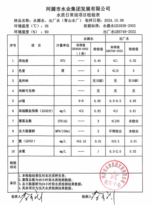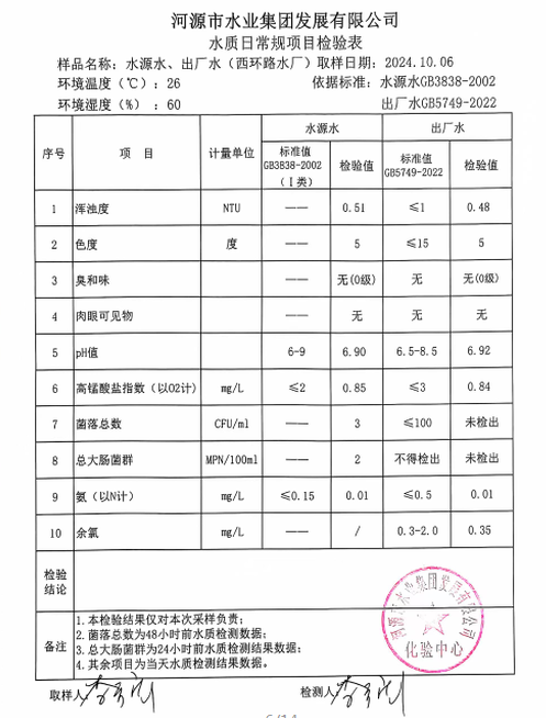 2024年10月6日水質(zhì)檢驗報告