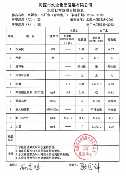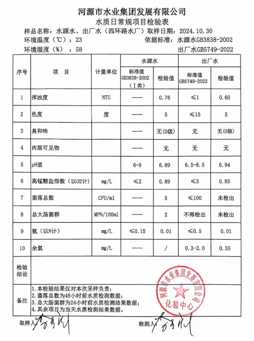 2024年10月30日水質檢驗報告